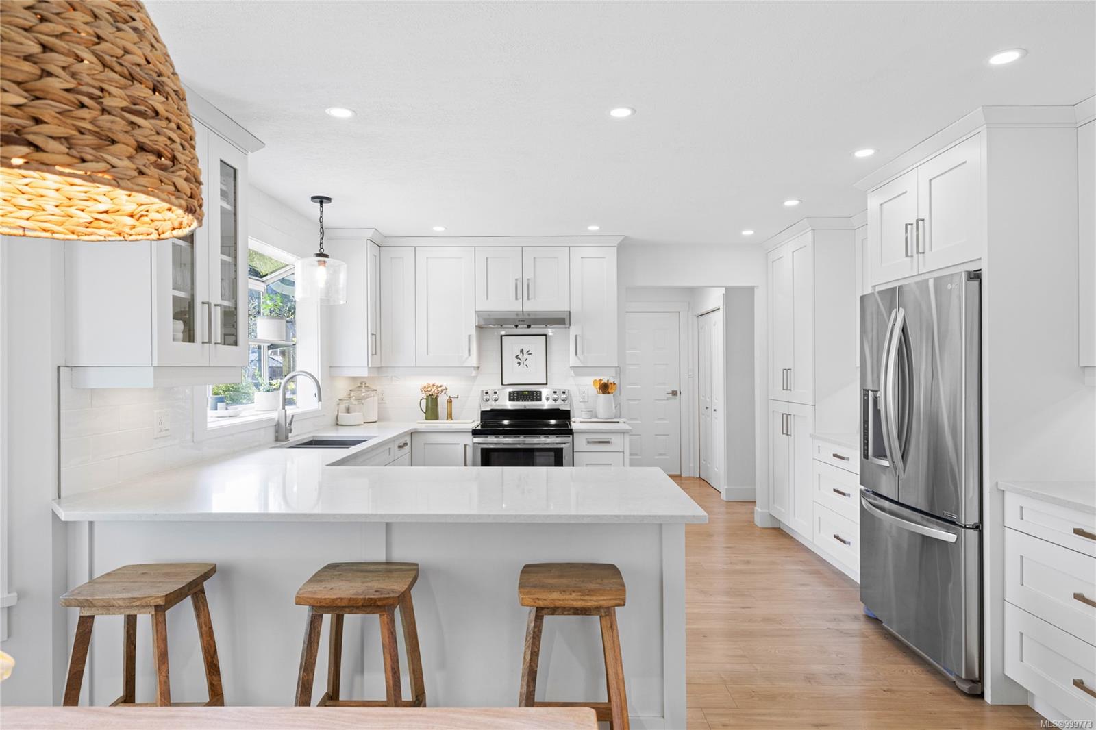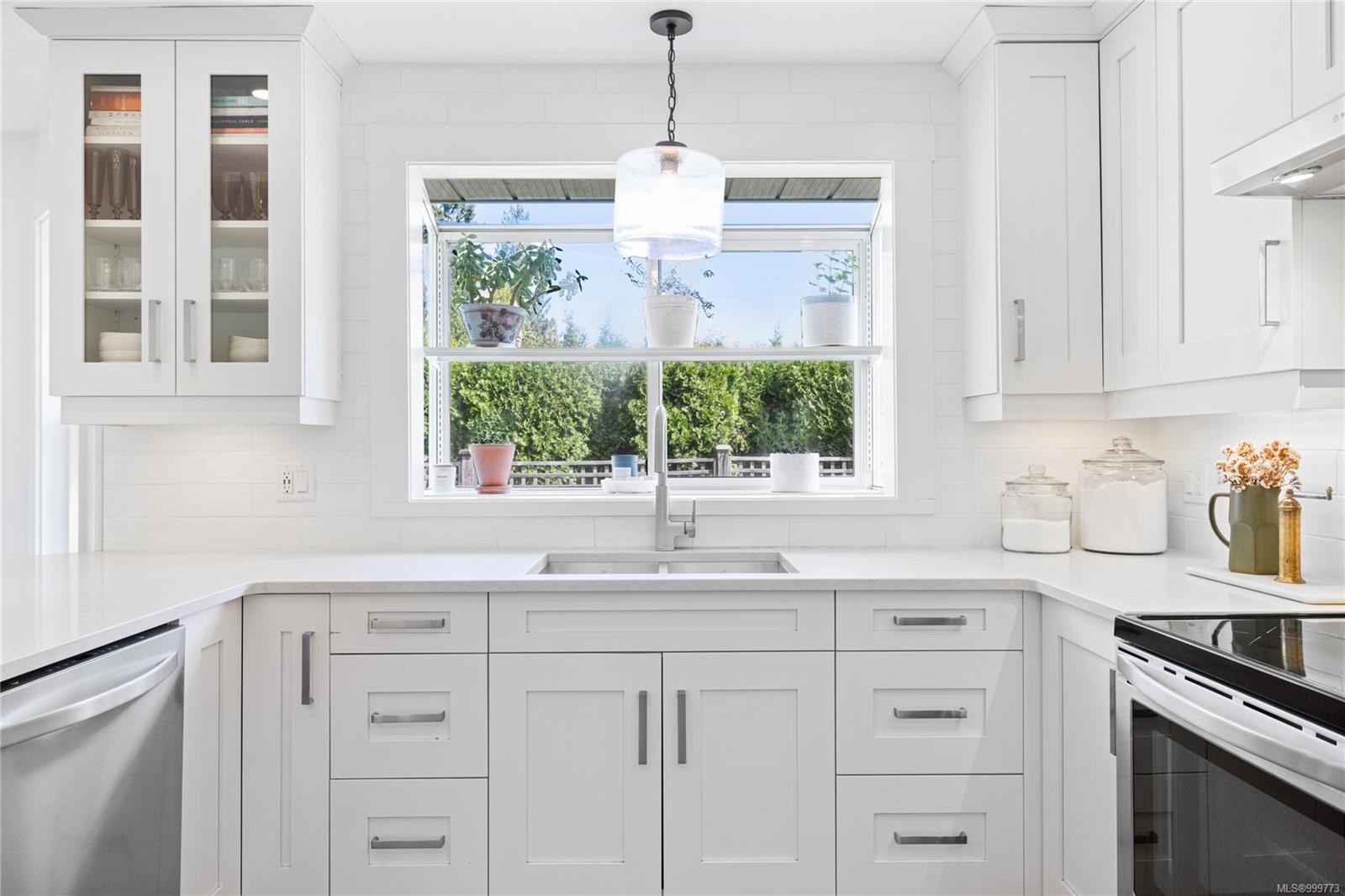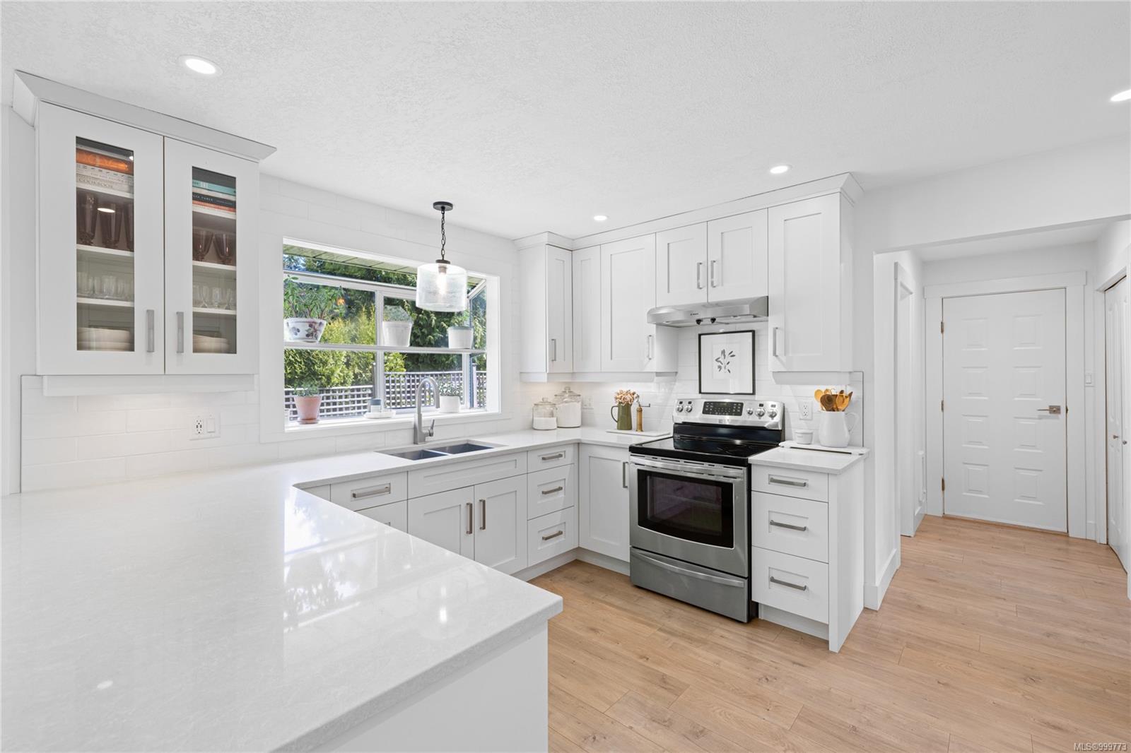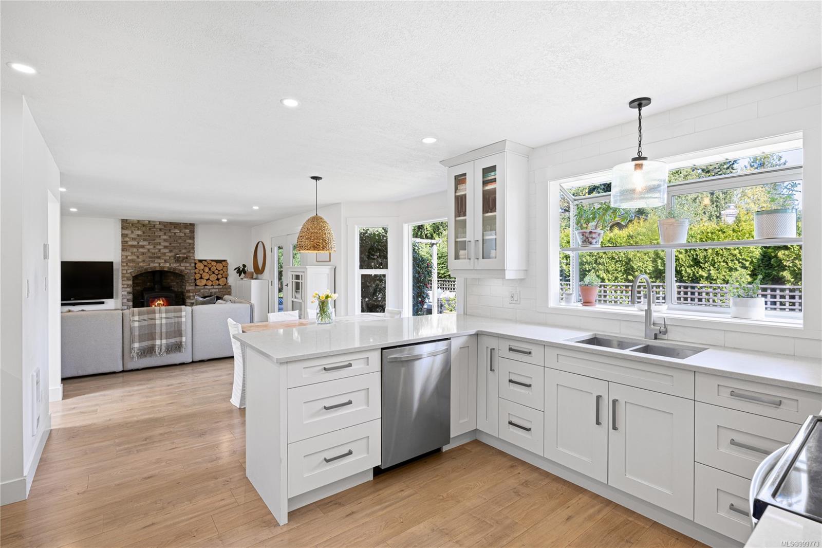 Just off the entry, a generous den offers a lovely spot for a home office, a cozy reading room, or even a hobby space—whatever your lifestyle needs. The recently redesigned kitchen is a delight, featuring crisp white cabinetry, elegant quartz countertops, and a sweet garden window over the breakfast nook—perfect for your morning coffee as you watch the world wake up.